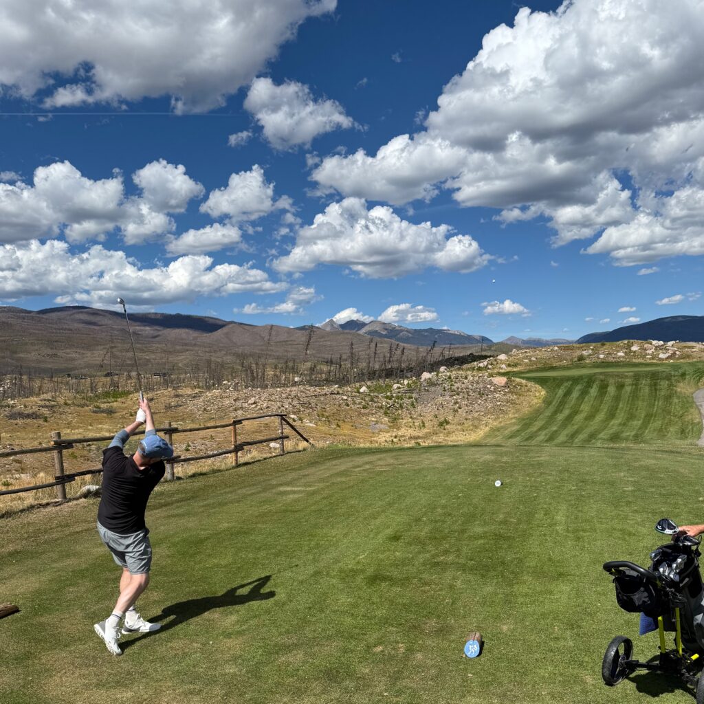 The East Troublesome Fire in 2020 charred the surrounding pine forest, leaving the course with a distinctly lunar feel. This was echoed by the insane carry of the ball at over 8,000 feet in elevation, which no doubt helped me to record one of my all-time longest drives at 339 yards.