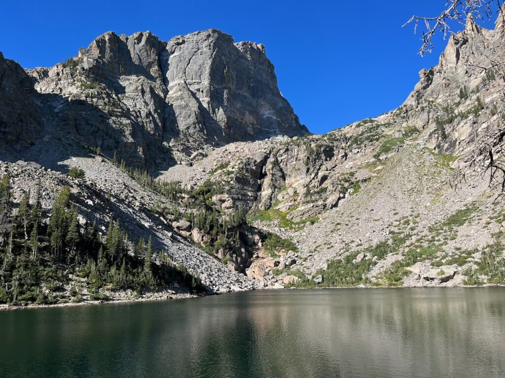 This was my first visit to the cabin since my grandmother passed away in 2021 at age 106. Going through her things, I found an old photo of her and a friend standing by the shore of Gem Lake, a picturesque pool of snowmelt hemmed in by the rounded granite of Lumpy Ridge.